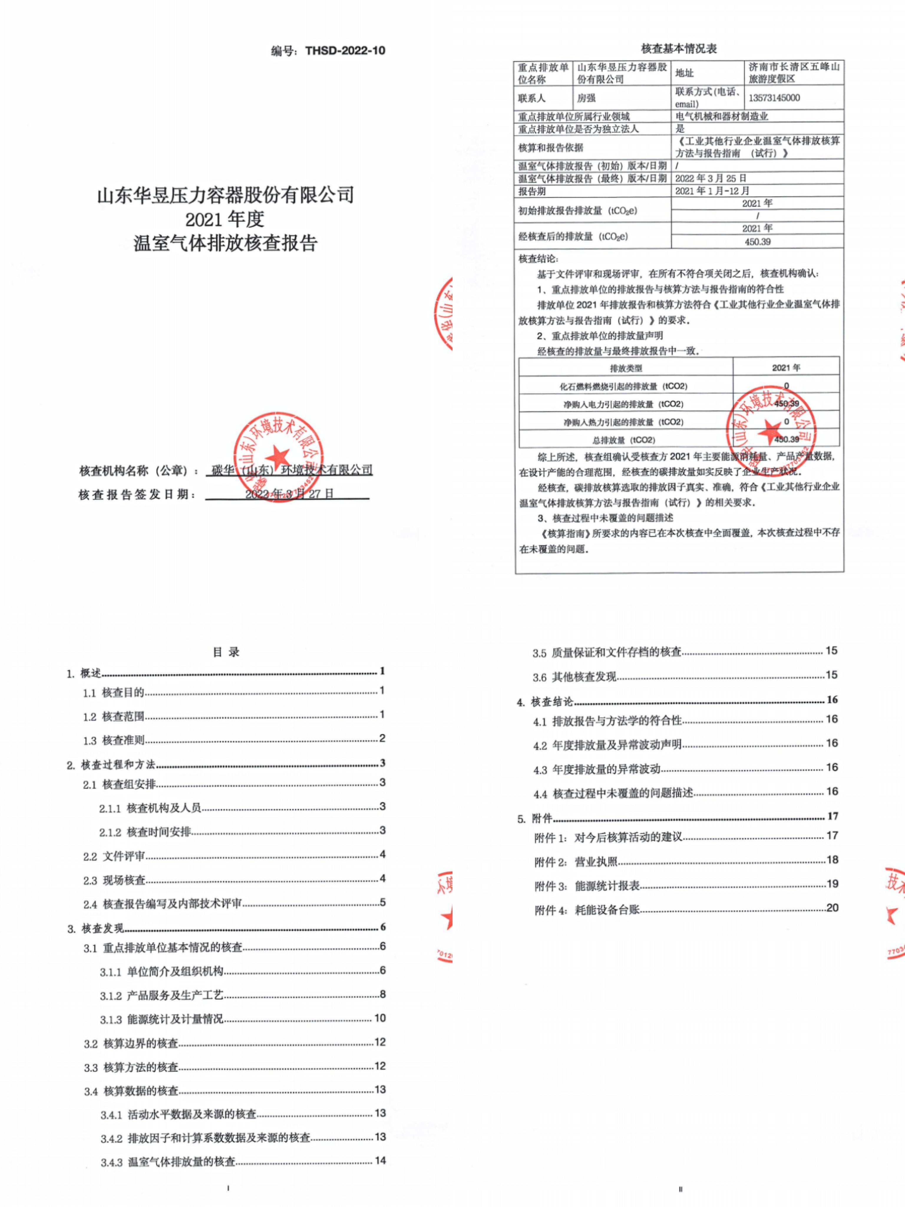 山东华昱压力容器股份有限公司2021年度温室气体排放核查报告