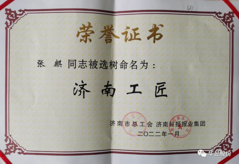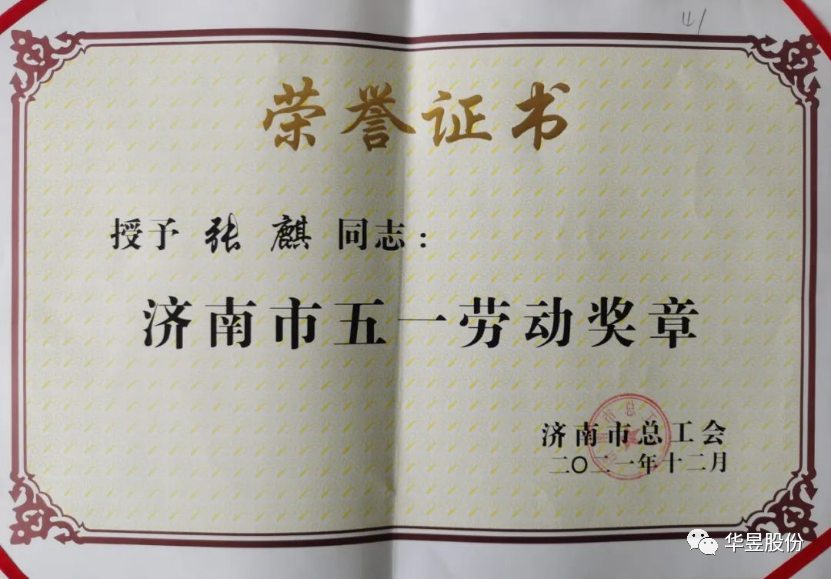 为深入贯彻习近平新时代中国特色社会主义思想,大力弘扬劳模精神、劳动精神、工匠精神,建设知识型、技能型、创新型劳动者大军,使工匠精神成为新时代的召唤。近日,山东省总工会、济南市总工会分别下发文件,通报表扬了在经济建设、政治建设、文化建设以及争先创优劳动竞赛中涌现出的先进集体和先进个人。山东华昱压力容器股份有限公司总经理张麒荣获“济南工匠”荣誉称号,授予“济南市五一劳动奖章”。