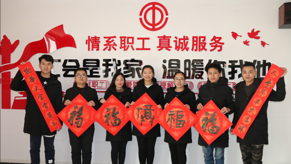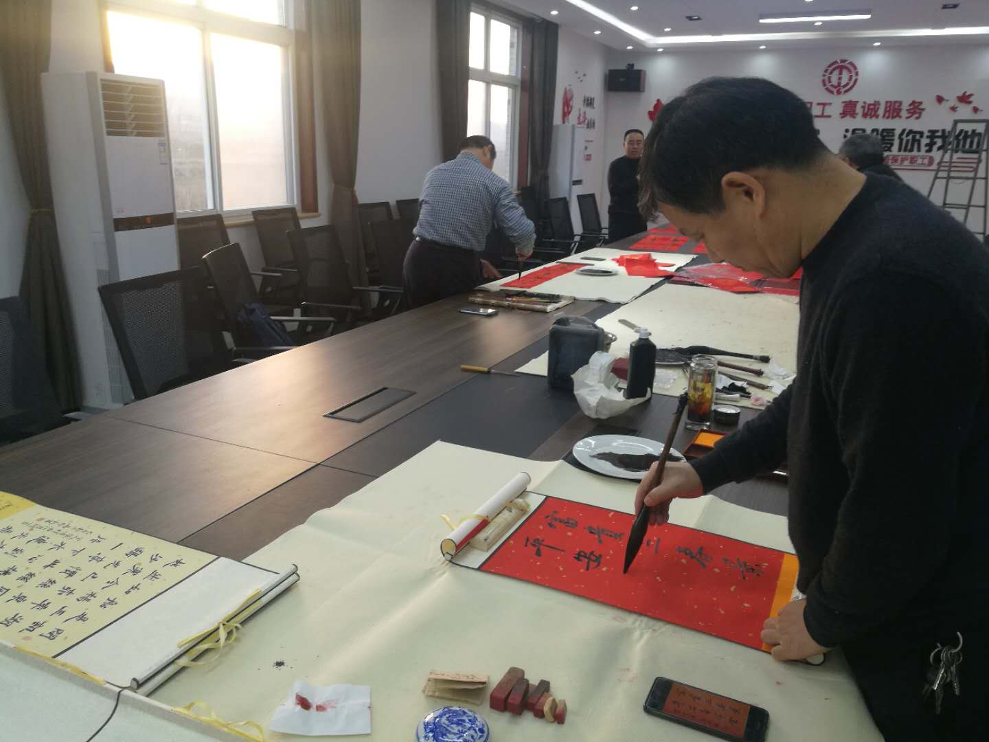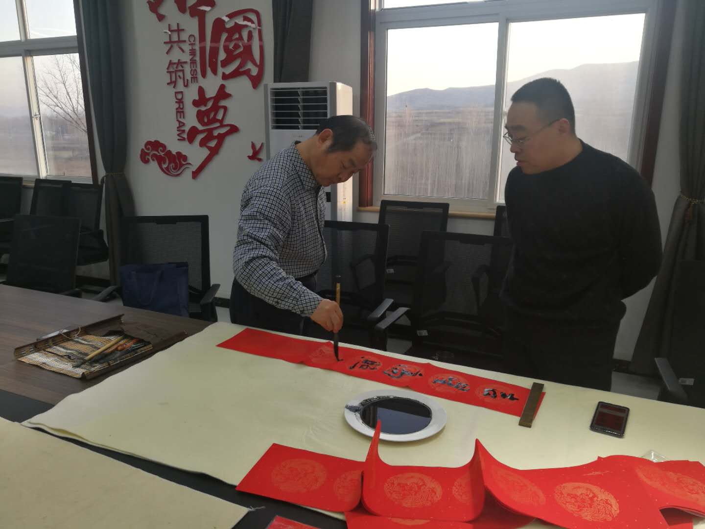 新春迎千祥;文艺进我家。活动中,书法家们迎新开笔、泼墨挥毫,浓浓祝福汇于笔端,“物华天宝常安乐;人寿年丰大吉祥。”“一元复始呈兴旺;万家更新展宏图。”一幅幅喜庆的对联、吉祥的“福”字,传递着书法家们对山东华昱的祝福,传递着山东华昱对幸福春天的希望,寓示着华昱人对美好生活的向往。在半天的时间里,百幅春联和“福”字,赠送给华昱员工。