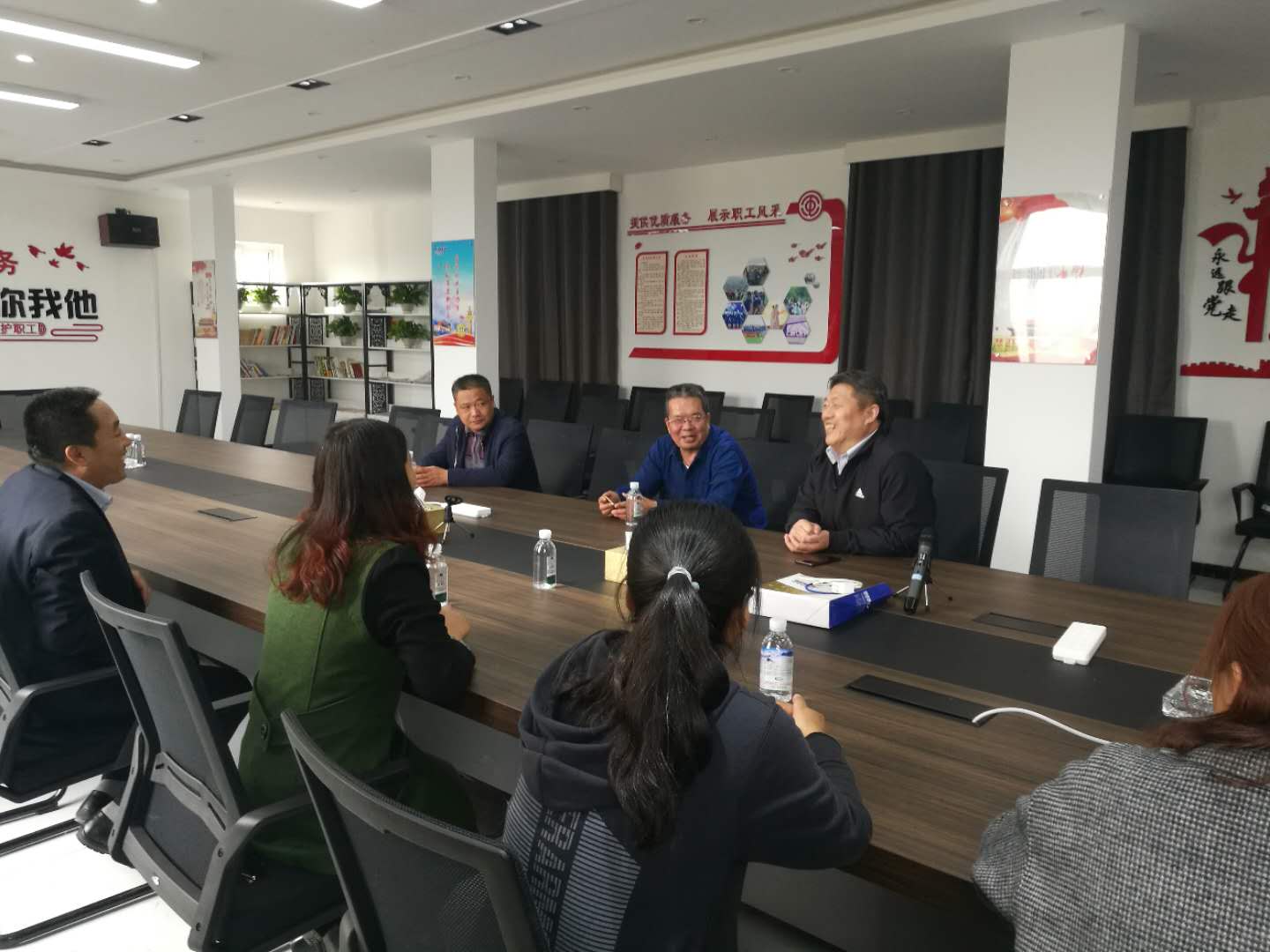 宋传娥主席一行查看了公司工会运营情况,详细询问公司的投产建设、生产经营、职工待遇等情况,并对公司的职工驿站和职工书吧的建设给予了充分肯定。