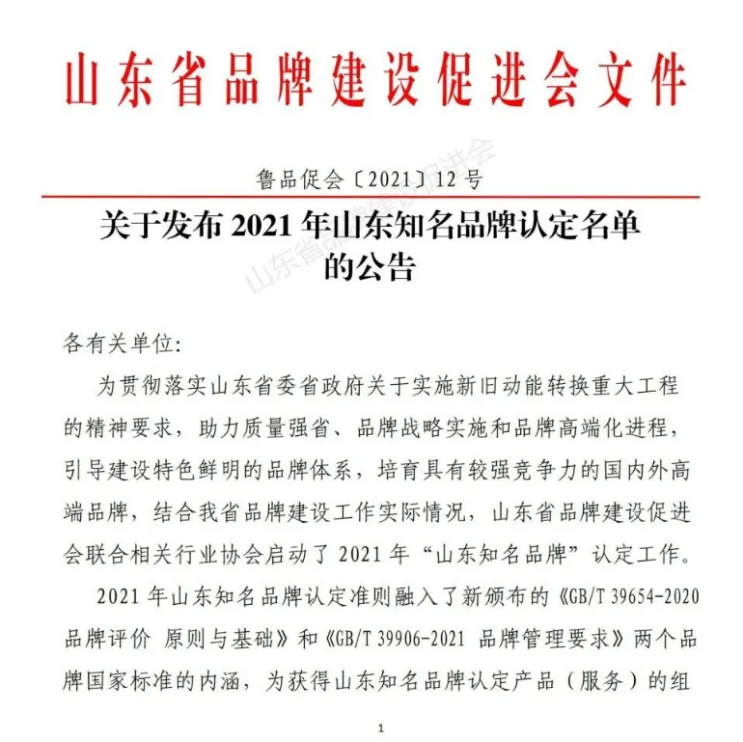 12月20日,山东省品牌建设促进会发布2021年度“山东知名品牌”公告,“华昱”品牌被评为2021年度“山东知名品牌”。