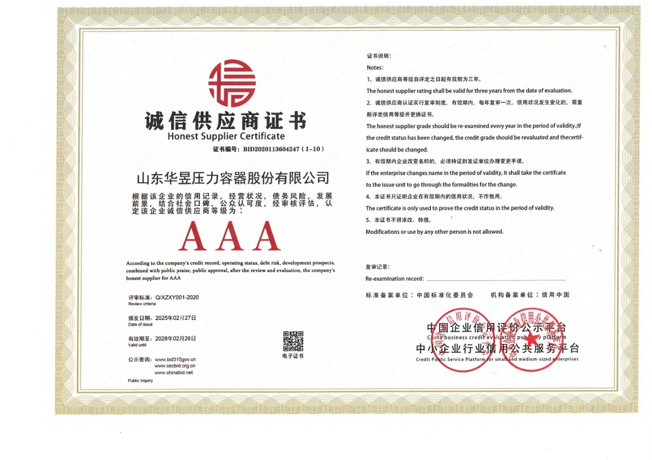诚信供应商证书