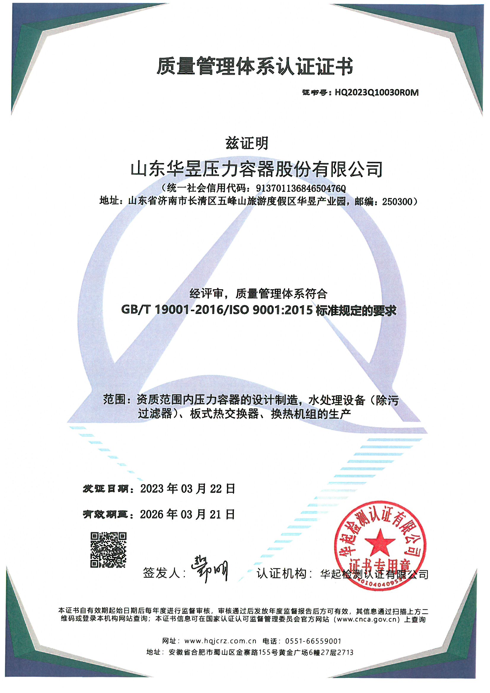 质量管理体系认证证书