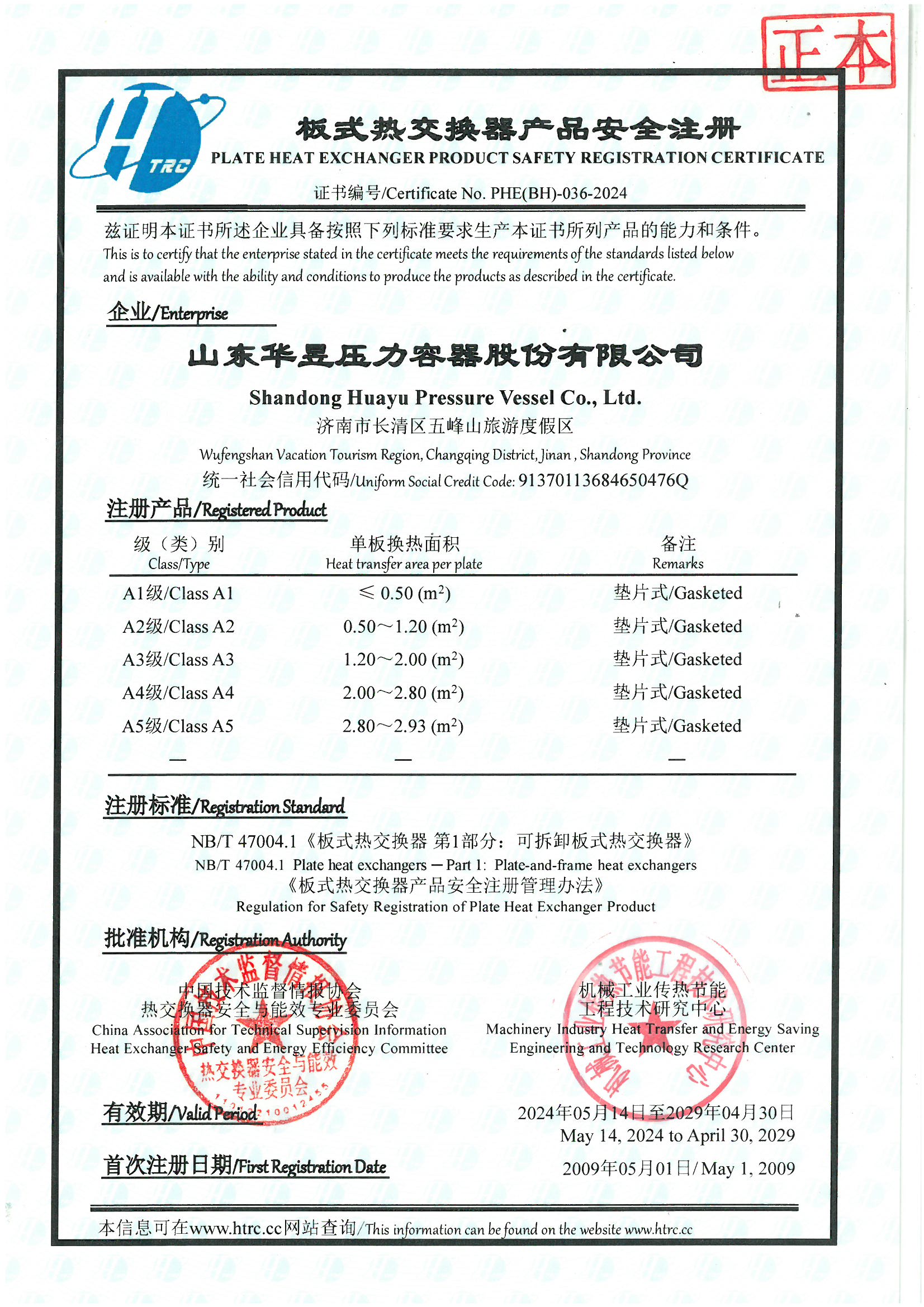 板式热交换器产品安全注册