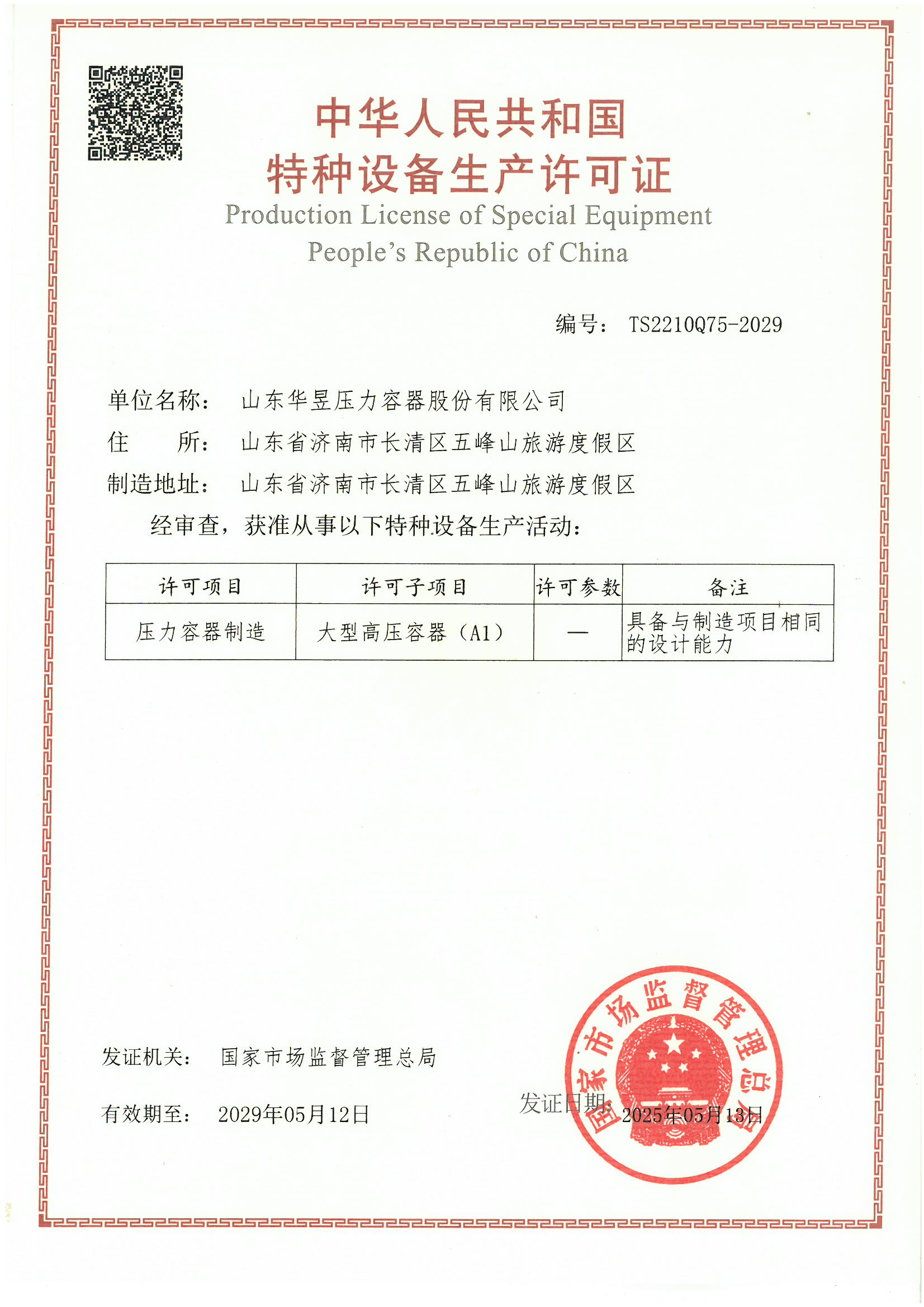 A1特种设备生产许可证