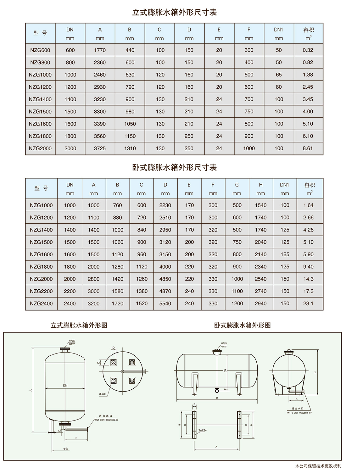 膨胀水箱表示为NZG1.6×1-50×2×3。
